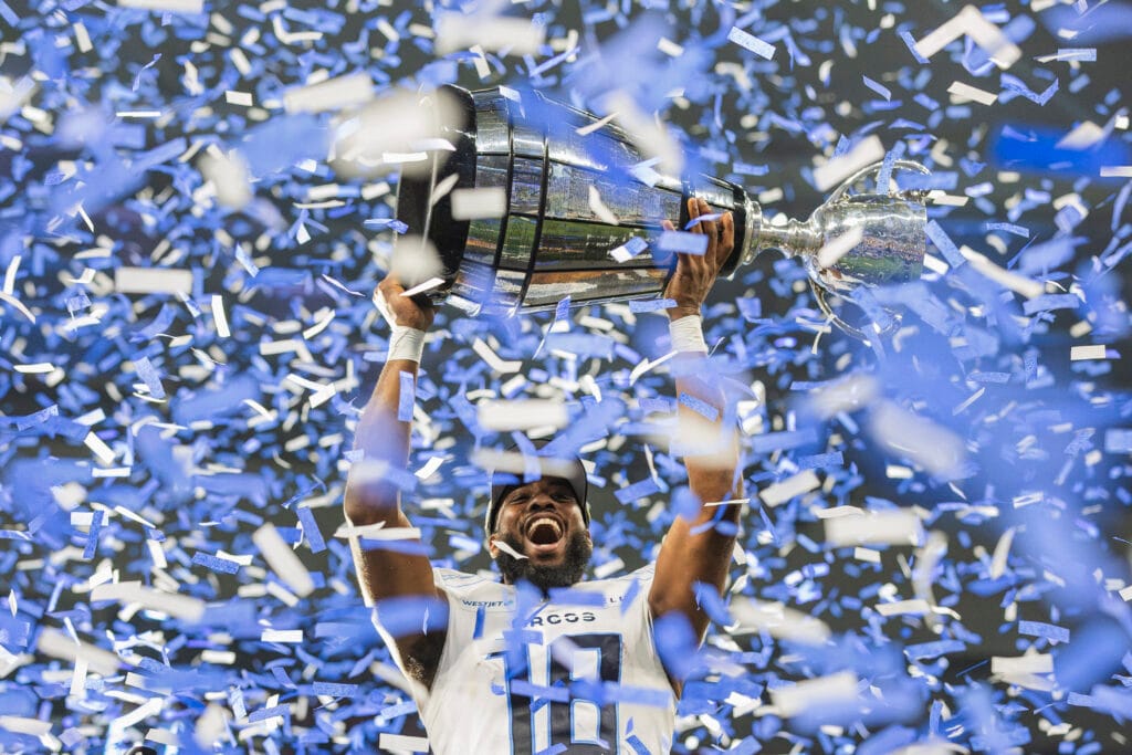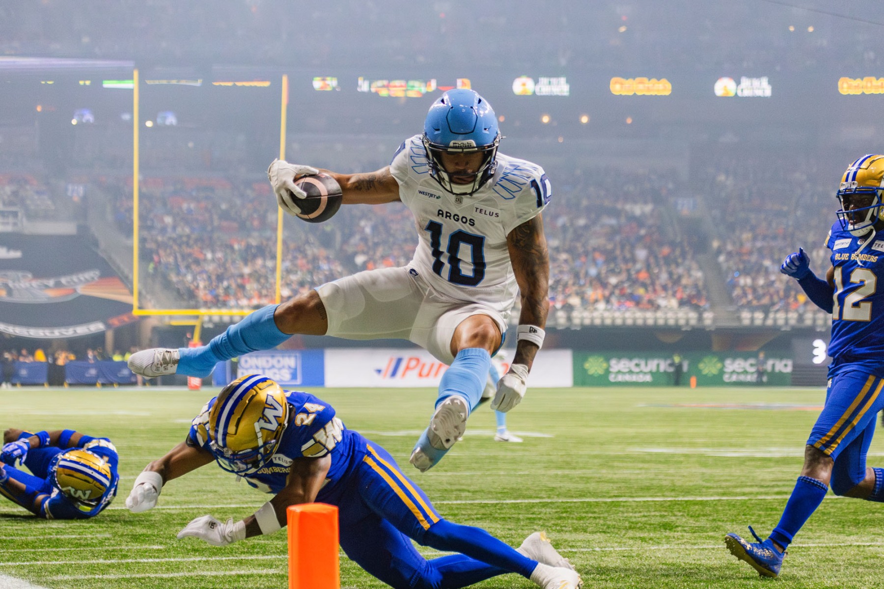 The second time was just a couple of months ago at the 2024 Grey Cup in Vancouver. After a long break from photojournalism, I was assigned by CP Images to shoot ad activations during the game. In between activations I had a couple of chances to capture game play, and on one sequence I nailed some peak action of a touchdown. As I was walking down the sideline and getting into position for the next ad, I had the feeling come back—this was something that I could be really good at.